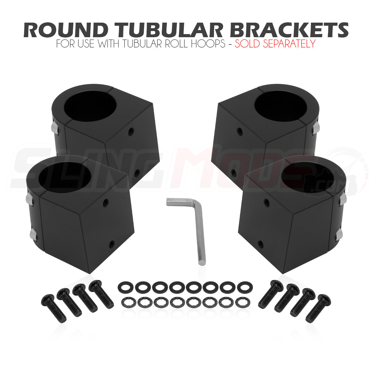 Please note that the "Squarish" style roll hoops work with the following tops: Bullet Speed V-Back Canvas, Slinglines Modular Roof Top System, and our Thermal R&D Raptor Roof Top System. The "Round" roll hoop version will only work with our Thermal R&D Raptor Roof Top System. Unfortunately both styles will NOT work with the OE Polaris Slingshade top.