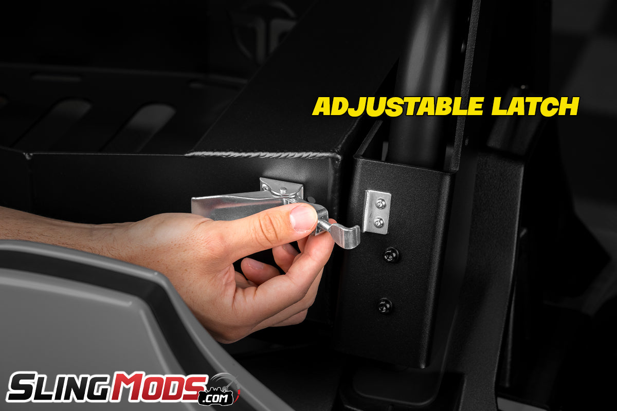 To address this issue, we partnered up with our friends over at Thermal R&D to bring you a pair of roll bar mounted luggage racks. These racks are all aluminum and powder coated with a satin black finish and feature a swivel feature for driver and passenger, allowing you to quickly and conveniently gain access to your stored belongings. The swivel feature also makes it extremely convenient when refueling. Now we understand that you're not going to be traveling at all times, so these luggage racks also feature a quick release pin, allowing you to easily remove each luggage rack when you're not traveling. When it's time for your next trip, simply re-install each rack with the hinge pins.